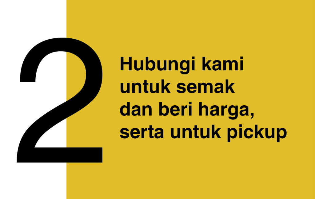 Proses pembelian kami amat mudah dan pantas. Kami hanya berurus niaga dalam tunai dan bank.